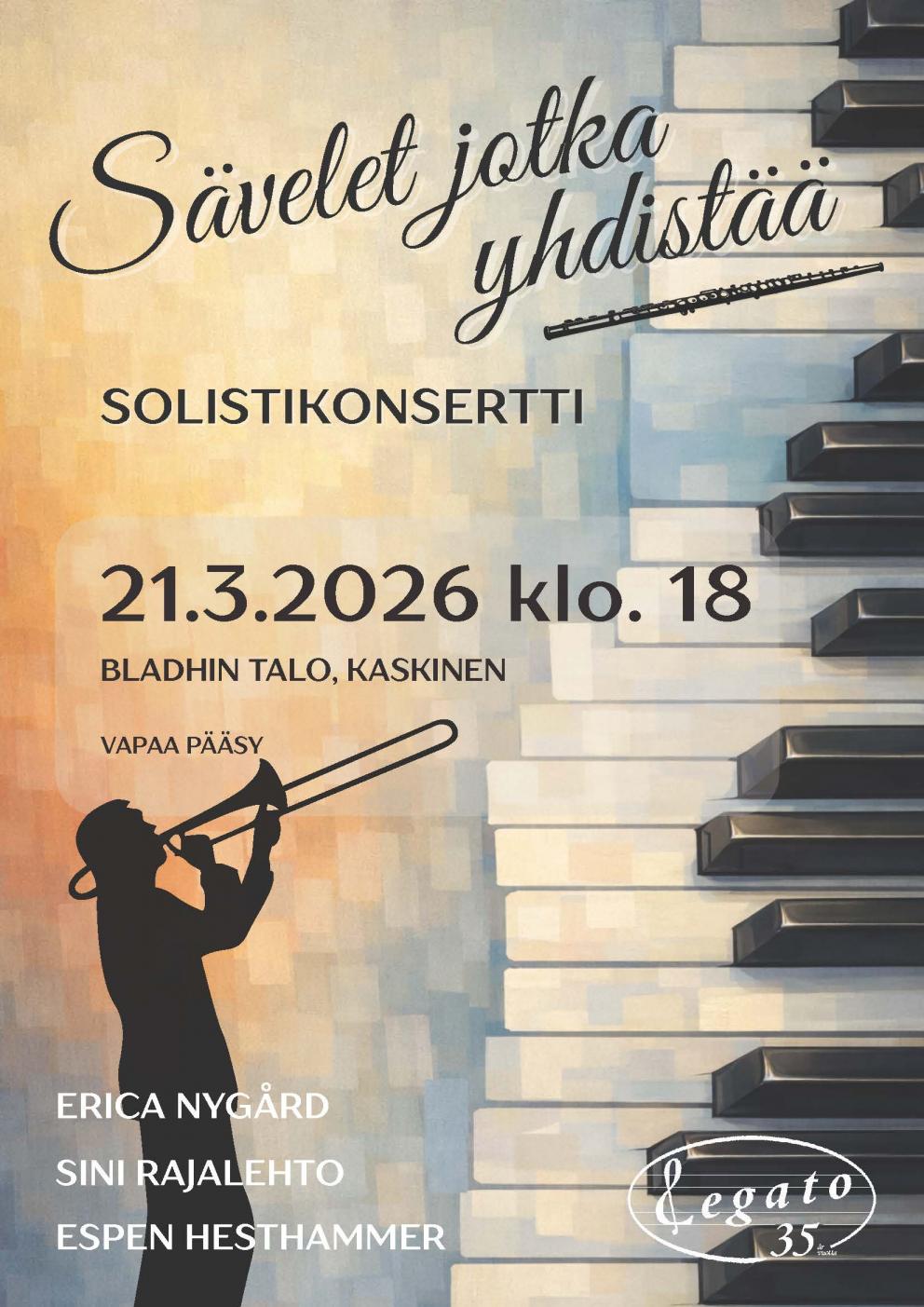 Musikinstitutet Legato firar detta läsår sina 35-år och med anledning av det har vi tre stycken jubileumskonserter av olika slag och med olika sorters musikinriktningar.
